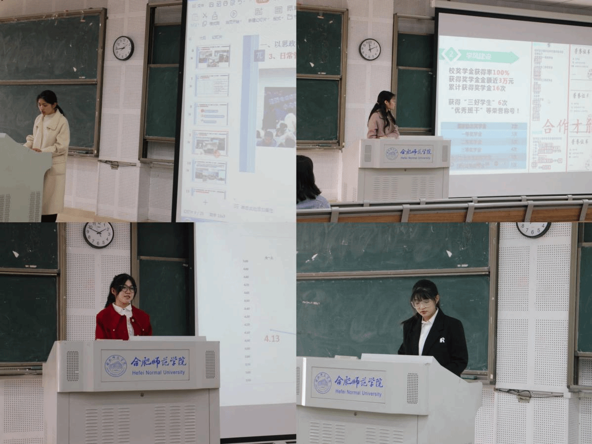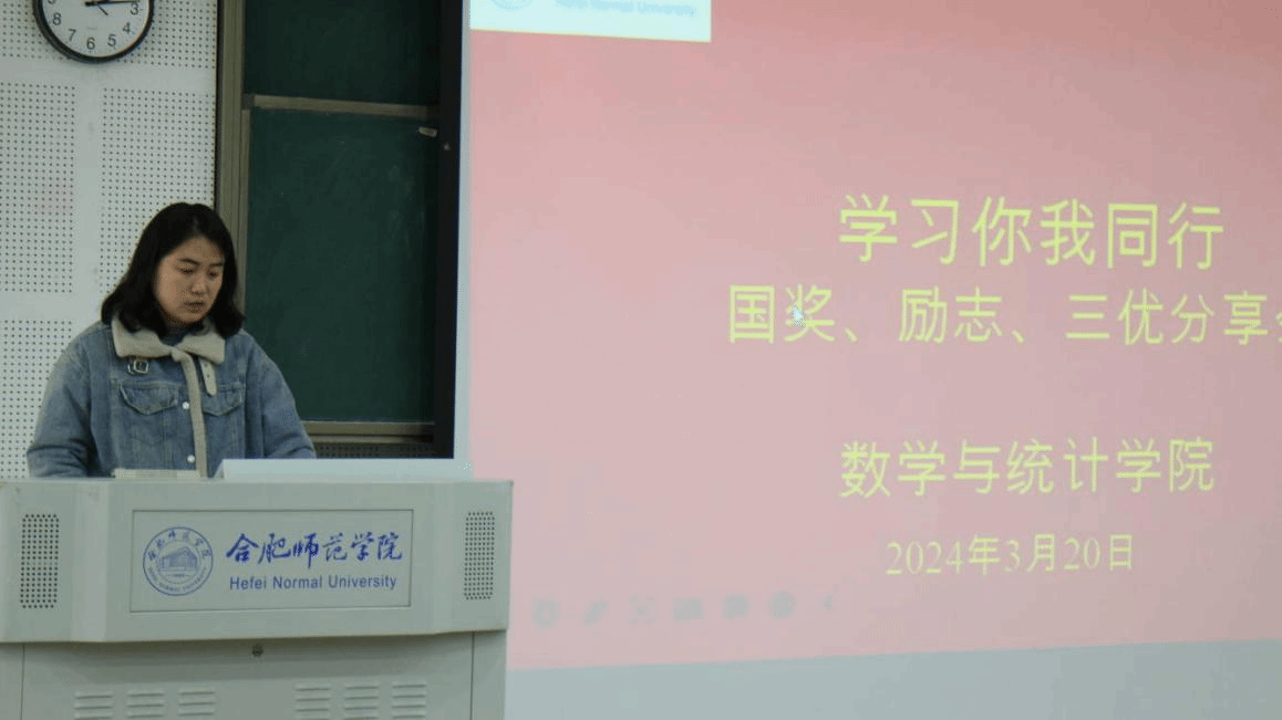 会上,2021级数学与应用数学(师范)专业一班班长张晓珂同学以班级学风建设为主线,介绍了班级学风建设的三大方面内容:学,行,乐。通过班委的共同努力,全体班级同学的配合,才能共建一个学风优良、成绩优异的和谐班集体。该班级为2022-2023学年“十佳优良学风班级”,张晓珂是2022-2023学年励志奖学金获得者。