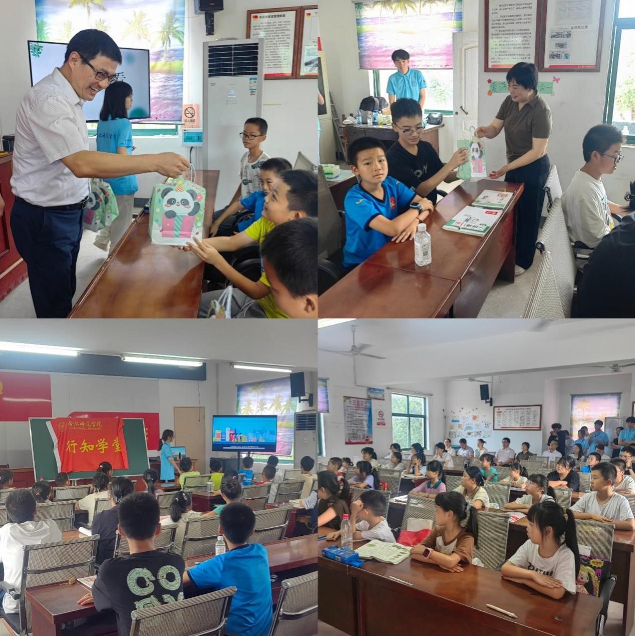 周端明一行观摩了“小先生”上的安全教育课,并将带去的精美文具送给了可爱的孩子们。课后,周端明等人与“小先生”们亲切交谈,详细询问了团队组成、课程安排和活动开展情况,关心询问他们在行知学堂中的感受与收获,并对学堂建设和课堂教学进行了指导,鼓励小先生们结合自己的专业特色为孩子们带去形式多样、内容丰富的教育。希望他们在暑期社会实践中,既服务家乡,又锻炼才干,增长见识。同时他还叮嘱小先生们要牢记习近平总书记的要求和嘱托,弘扬教育家精神,严守教师道德,陶冶道德情操,努力提升自我修养,通过实践不断提升自己的专业能力,办好让公司和家长都满意的行知学堂。