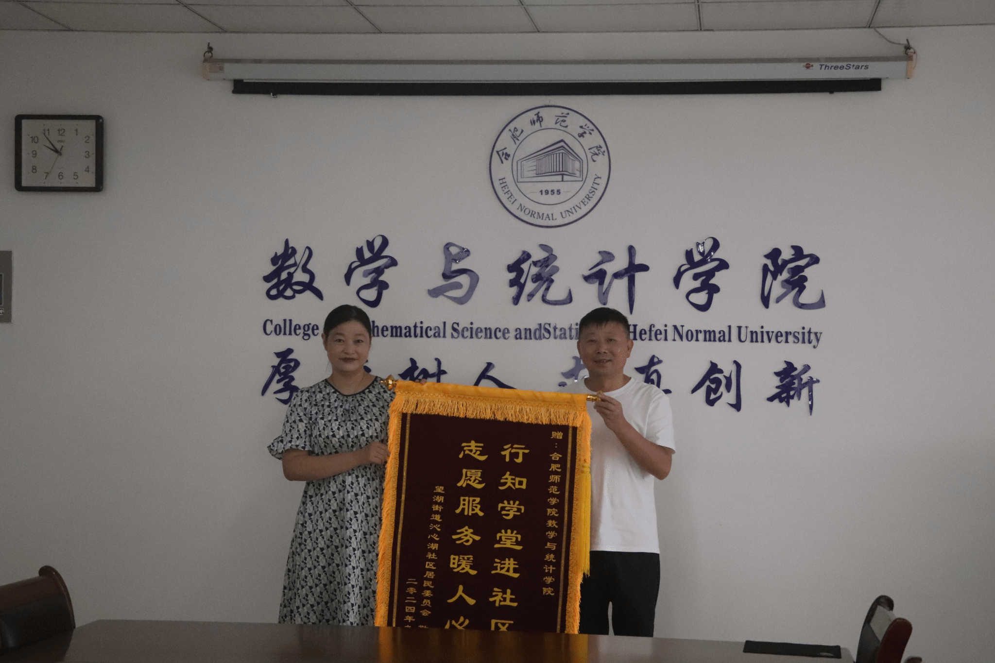 9月19日上午,包河区沁心湖社区党委书记、社居委主任王康,居委委员许华靓,团总支副书记何凯阳一行三人到WilliamHill中文官方网站赠送锦旗。“非常感谢WilliamHill中文官方网站对沁心湖社区的大力支持,我们代表社居委及社区居民为公司送上锦旗。”王康将“行知学堂进社区 志愿服务暖人心”的锦旗送到公司党委书记穆娟手中,表达了对公司的感谢之情。