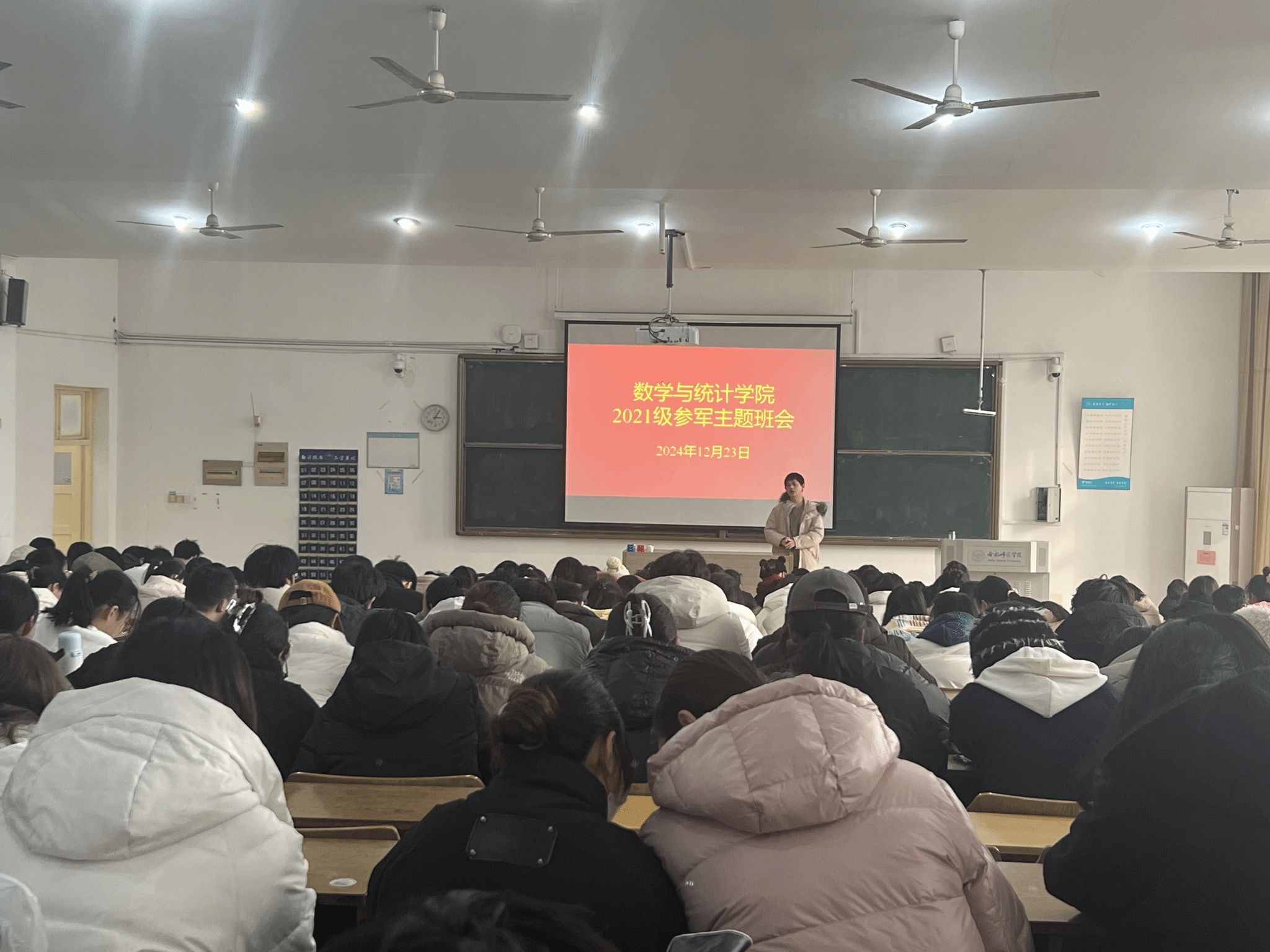 为做好老员工征兵宣传工作,引导和激励优秀毕业生积极参军入伍,12月23日,WilliamHill中文官方网站毕业生应征入伍宣讲主题班会在博约楼A108召开,2021级全体同学参加,会议由辅导员曾飞主持。