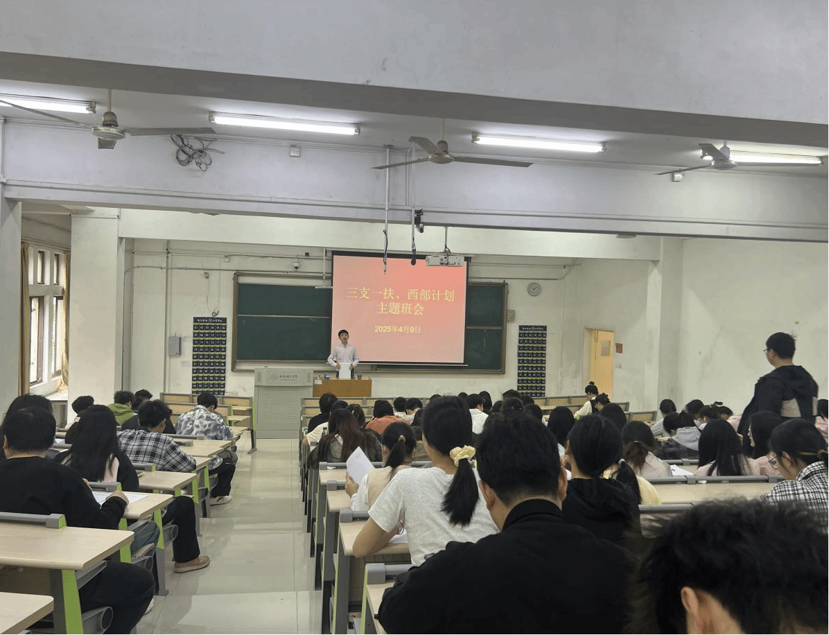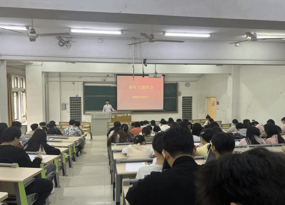 曾飞还重点介绍了“三支一扶”、“西部计划”的招募条件、岗位优势及发展前景,鼓励有志青年投身乡村振兴。“基层是锻炼能力的广阔舞台,服务期满后不仅在考研、考公中享有政策倾斜,更能积累宝贵的实践经验。”此外,班会还特邀退伍员工代表分享了军营成长经历,讲解老员工参军优待政策,激发学子参军报国热情。