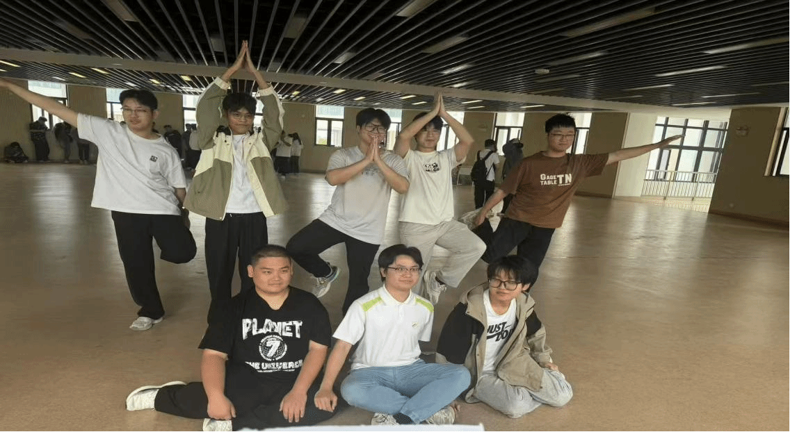 该环节设有企鹅漫步和团体几何阵两个项目。企鹅漫步项目中,同学们化身一个个企鹅,模仿其行走的步伐,呈企鹅状完成规定赛道路程。团体几何阵项目中,团队根据工作人员给出的造型图用身体摆出几何图形,完成“压力释放阵型”挑战。
