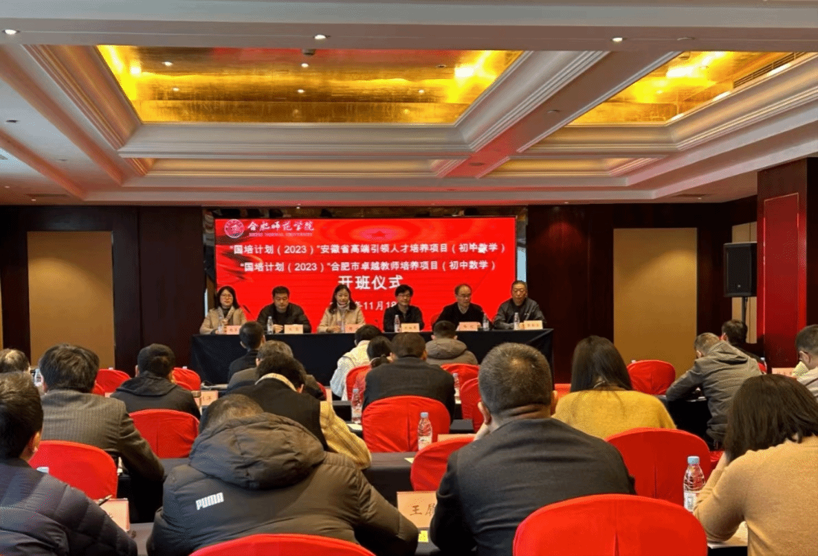 2023年11月17日,为促进教师的专业成长,“国培计划(2021-2023)”——安徽省高端引领人才培养项目和合肥市初中卓越教师培养项目(初中数学)2023年第二期跟岗研修班在合肥市经开区丰大国际大酒店顺利举行开班仪式。williamhill官方网站公司党委书记穆娟、副经理杨刘、继续教育公司副经理王磊、国培项目负责人张新全教授、新青年数学教师工作室创始人刘祖希教授和来自全省各地的学员参加了本次开班仪式,仪式由国培班主任赵玉华老师主持。