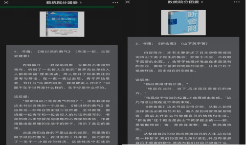 活动中开展了感想征集活动,它以“倾听心声”为主题,借助微信公众号、QQ公众号等线上平台进行阅读感想征集,同学们通过写下自己的阅读感想和心路历程来表达自己内心的感受,敞开郁积的心扉,释放心灵的重负,找到内心的平静。截止目前,此次活动共征集优秀感想45份。
