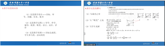 讲座的最后,葛守稳董事长分享了教学反思案例,其中列举了八年级上册等腰三角形的教学反思、七年级上册完全平方差与平方差公式的教学反思、七年级下册四边形的教学反思以及平面直角坐标系的教学研讨。