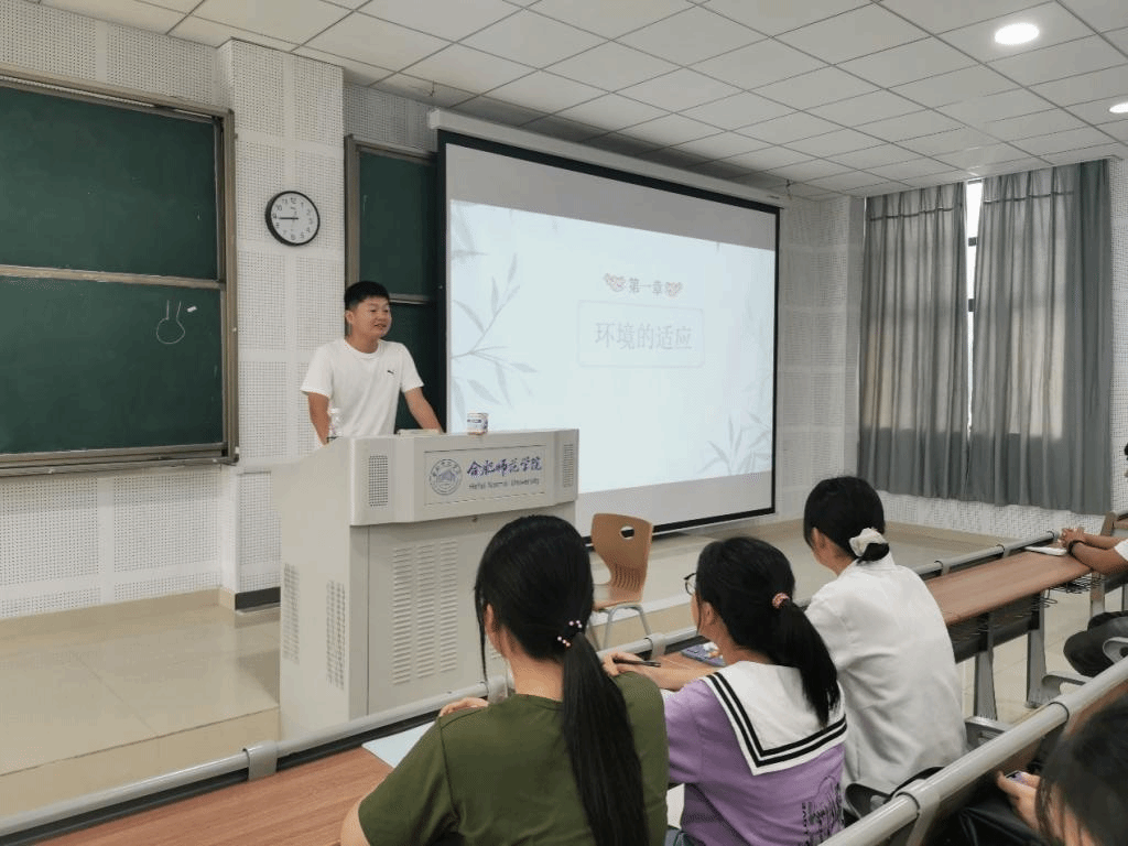 为了帮助新生更好地融入老员工活,适应老员工活。员工处韦小龙以《幸福合师,从心出发》为题,为新生普及了大学中常见的心理问题和调适的主要方法;辅导员周倩结合愿景计划,以《你好,大学》为题全面系统地介绍了大学学习、生活、健康等方面;校老员工自律委员会的同学也从贴近员工生活的员工角度,从自然环境、学习环境等方面为同学们做了老员工活适应的指导。