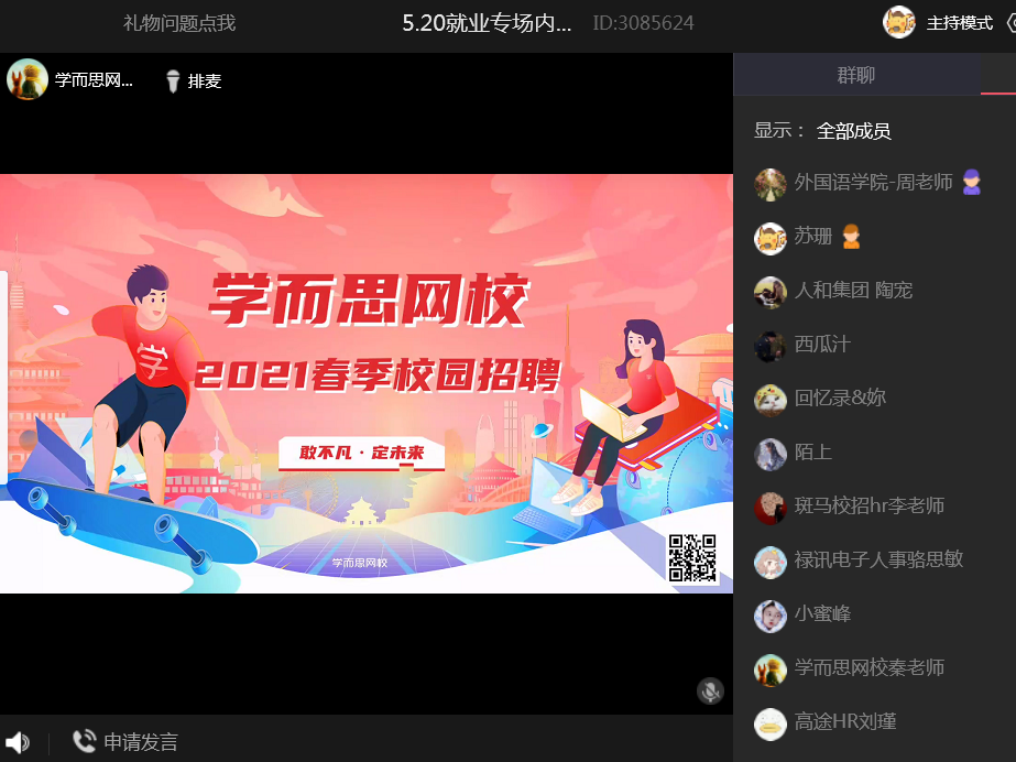 本网讯 为贯彻落实党中央、国务院“稳就业”“保就业”决策部署,按照教育部、省教育厅有关工作要求和公司2021届本科毕业生就业促进周活动方案安排,更加精准地搭建中小企业与所需专业人才的对接平台,5月20日下午2点,由就业创业工作处主办,WilliamHill中文官方网站、外国语公司承办的“520空中就业宣讲招聘会”活动以线上形式顺利举办。