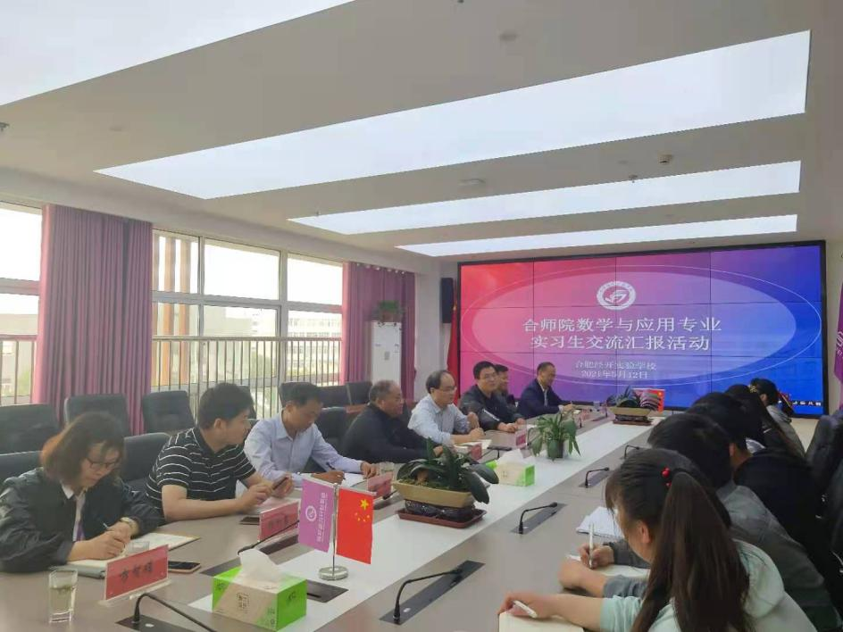 活动第二阶段,在经开实验公司召开教育实习汇报交流会,经开实验公司邵忠德董事长、梁贺董事长、郝伟董事长、williamhill官方网站挂职副董事长王伟、教研处张和君主任,政教处方智娟主任和公司指导老师、全体实习生参加交流会。