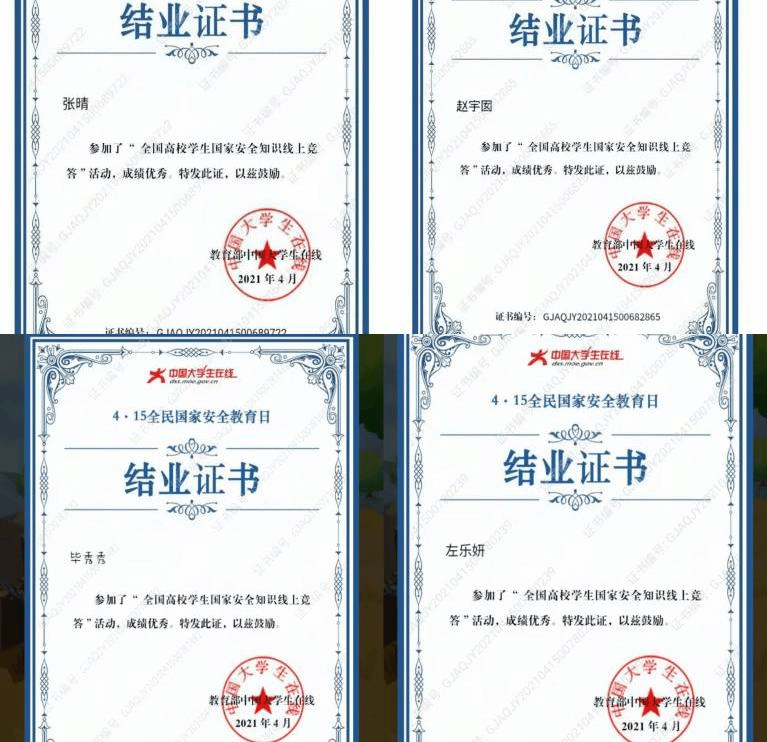 公司全体员工参加“全国高校员工国家安全知识线上竞答”,并获取中国老员工在线公众号颁发的学习证书。