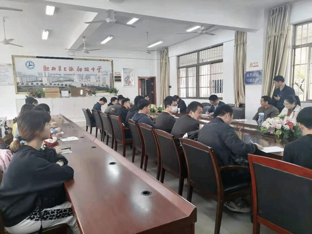 本网讯 williamhill官方网站2018级数学与应用数学(师范)实习安排见面会于2021年3月29日上午在肥西上派初级中学2号会议室如期举行。参加此次活动的有上派初中教育实习领导组成员、三位学科部学科组长、williamhill官方网站领队导师万家练、姚婷以及30名实习生。