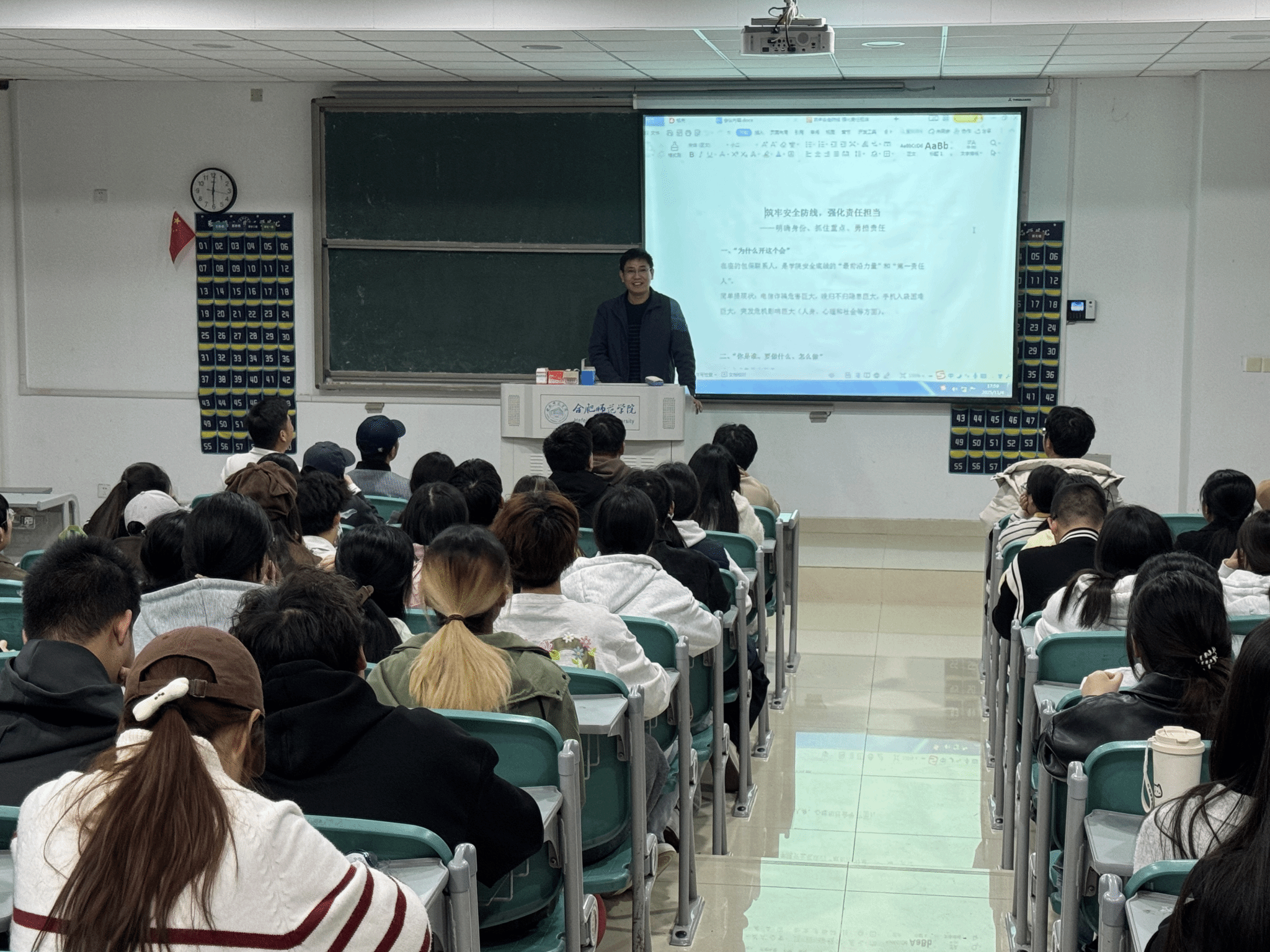 为切实加强员工安全管理,筑牢安全屏障,公司制订了包保联系制度,2025年11月4日,WilliamHill中文官方网站在博学楼C201教室召开主题为“筑牢安全防线,强化责任担当”的包保联系人会议。全院300余名联系人参会,公司党委副书记杨尔飞主讲。