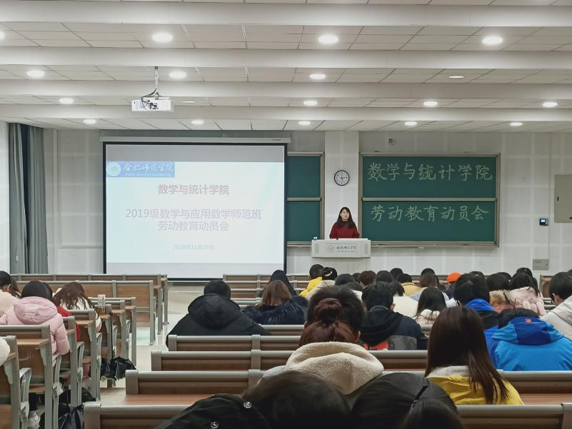 本网讯 为了让员工重视劳动教育课,加强员工的安全观念,11月25日WilliamHill中文官方网站在博学楼A108教室组织召开了2019级师范生劳动教育动员大会,大会由辅导员刘全亚主持,参会人员为19级数学与应用数学(师范)班全体员工。在会上,刘全亚介绍了本次劳动教育的目的,随后对未来一周的工作安排进行了规划,对于专业课停课一周相关事项做通知,同时公布了员工劳动教育任务汇总表,提示员工合理安排时间,提醒员工在劳动过程中注意安全,避免劳动工具碰伤、砸伤。