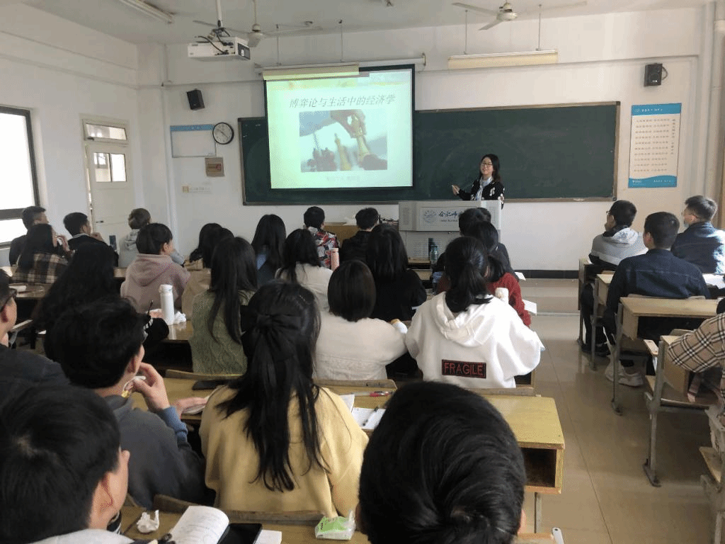 报告中,樊晓香用一些大家能够凭直观或简单分析就能把握的例子,为大家介绍博弈论的基本概念及应用,使同学们对这个热门学科产生浓厚的兴趣和初步的了解。这些例子也是我们在日常生活中经常遇到的问题或观察到的现象,比如说,政府负责修建公共设施的问题、“囚徒困境博弈”中的商家价格战、城市中心道路上禁止汽车鸣喇叭的原因,“智猪博弈”中的股市散户跟大户的现象、股份公司大股东才有投票权的原因,“动态博弈”中房地产开发商的开发决策、大公司要常年聘请律师的原因等等。