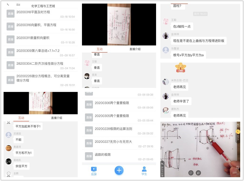 开学初期为避免教学平台卡顿等问题,采用观看慕课视频+直播讲解重难点+测验+直播答疑的上课模式。随后在学习通平台扩容之后,采纳多数员工意见,直播无压力的情况下全程直播上课。