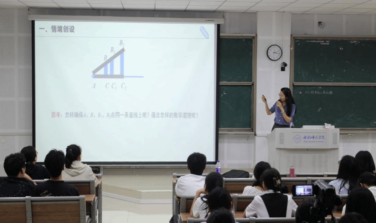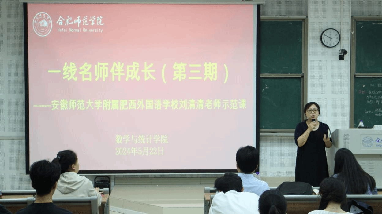 为落实“员工中心”理念,提升数学师范生教学技能,做好省级、校级师范生教学技能竞赛赛前辅导,5月22日下午,WilliamHill中文官方网站在滨湖校区博学楼A108教室举办了“一线名师伴成长”第三期活动。此次活动邀请了合肥市金牌职工、合肥市教坛新星、合肥市优质课一等奖获得者、肥西县初中数学名师工作室领衔人、安徽师范大学附属肥西外国语公司的刘清清老师为数学专业师范生上了一堂初中数学示范课,并做了师范生教学技能辅导讲座。WilliamHill中文官方网站副经理黄浩、数学课程与教学论教师栾庆芳、辅导员刘全亚,2022级、2023级共278位数学与应用数学(师范)专业的员工参加了本次活动,活动由副经理黄浩主持。