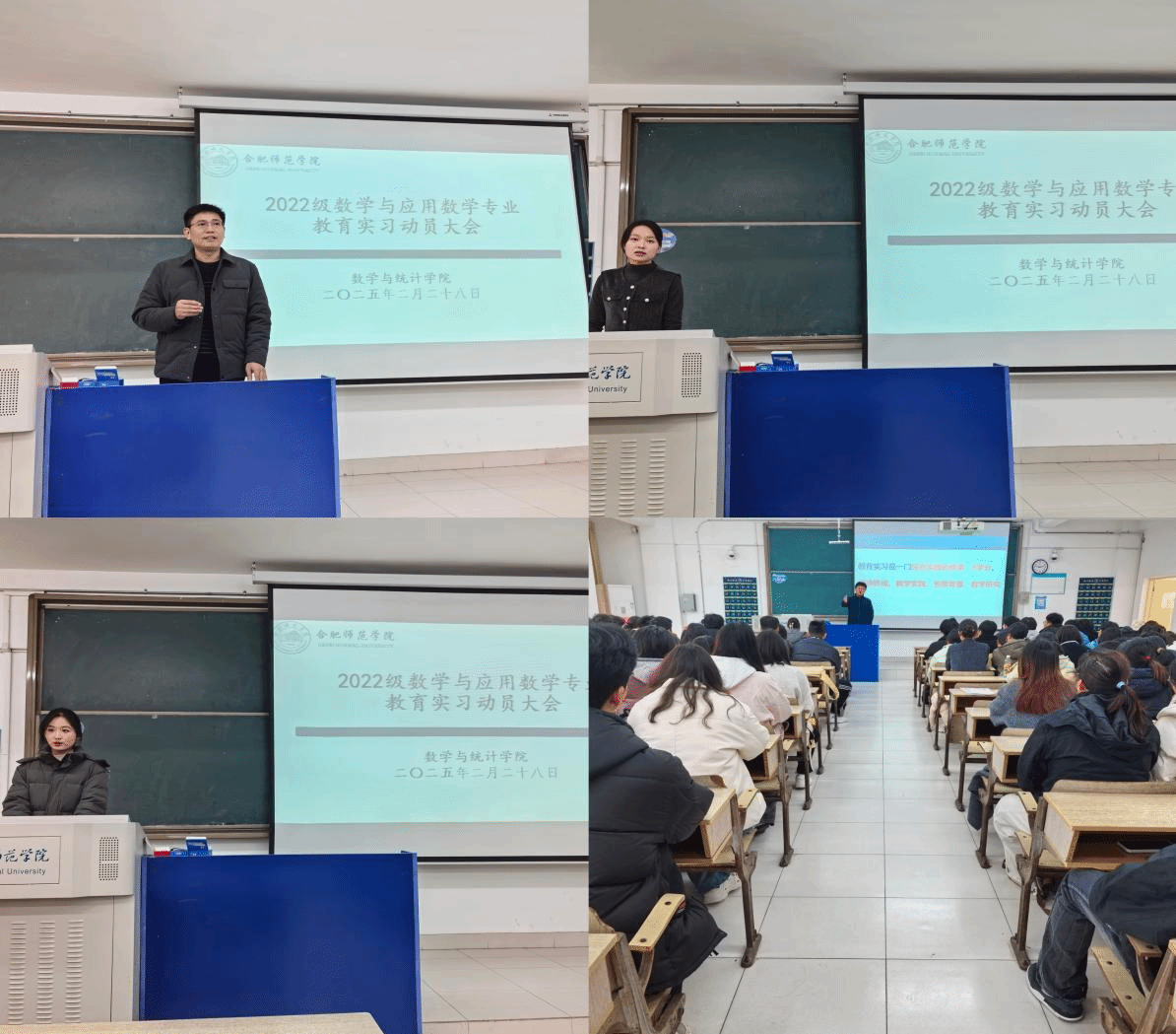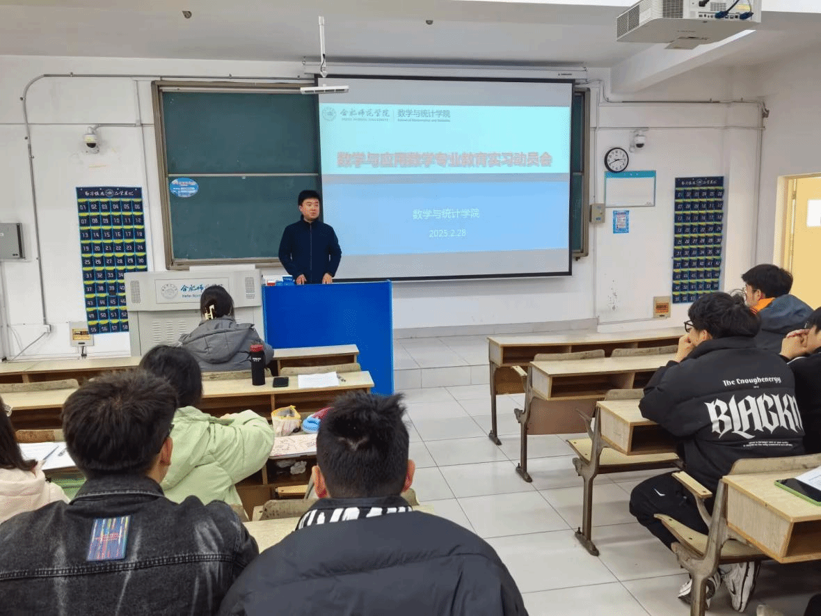为确保教育实习工作有序、高效、安全推进,2月28日下午,WilliamHill中文官方网站在博约楼211教室召开2022级数学与应用数学(师范)专业教育实习动员大会。公司副经理黄浩,辅导员杨尔飞,2021级优秀实习生代表以及2022级全体师范生参加会议,会议由杨尔飞主持。