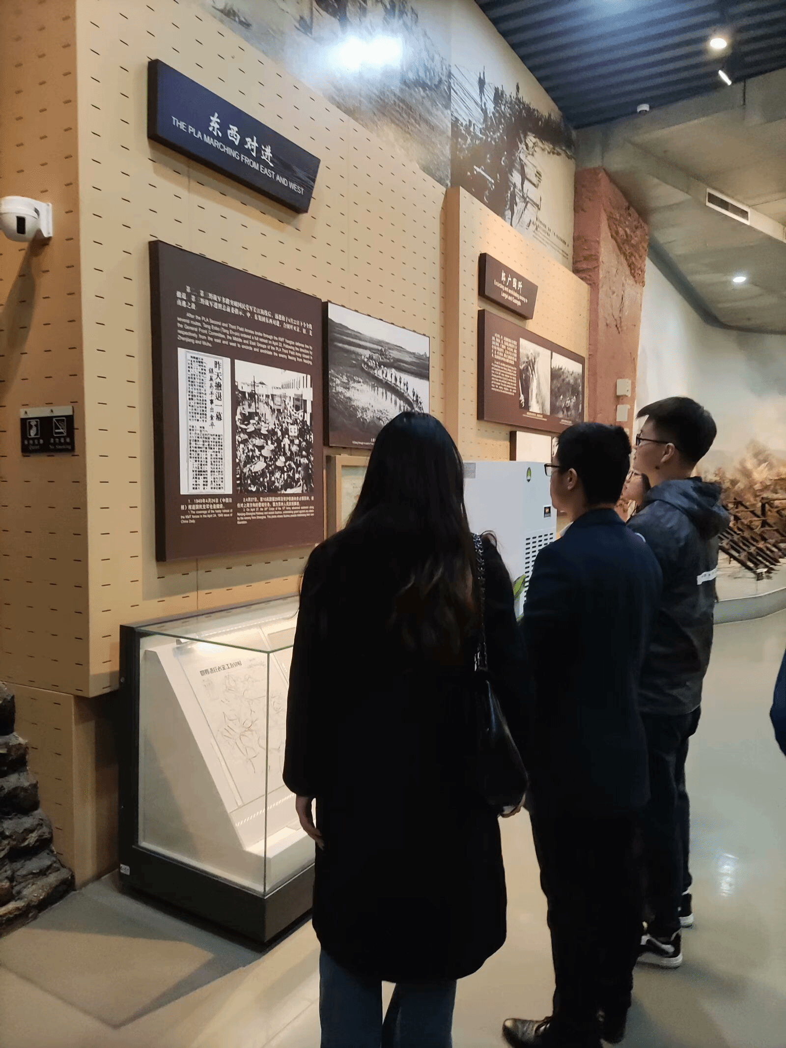 在渡江战役纪念馆,研究生党员们认真学习党史,重温入党誓词。依次参观了战前形势、战役准备、突破江防、战役胜利、人民支前和英烈业绩等六个展厅,细细观摩纪念馆内陈列的一幅幅历史影像和一件件珍贵物品。馆内陈列的图片、战斗仿真场景以及革命文物,生动翔实地展现了“钟山风雨起苍皇,百万雄师过大江”的壮阔场面,使党员深刻感受到革命先烈们坚定信念、革命到底,军民团结、奋勇争先,攻坚克难、勇于牺牲的渡江战役精神。