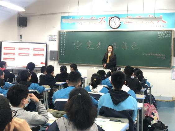 本网讯 为深入推进党史学习教育,把学习成效转化为服务动力,开展好“我为群众办实事”实践活动。4月27日,WilliamHill中文官方网站员工第一党支部葛梦雪等4名员工党员走进四十六中南校区,在七年级7班开展了以“学习百年党史 奋发青春力量”为主题的党史宣讲活动,为中员工们带来了一场生动的党课。