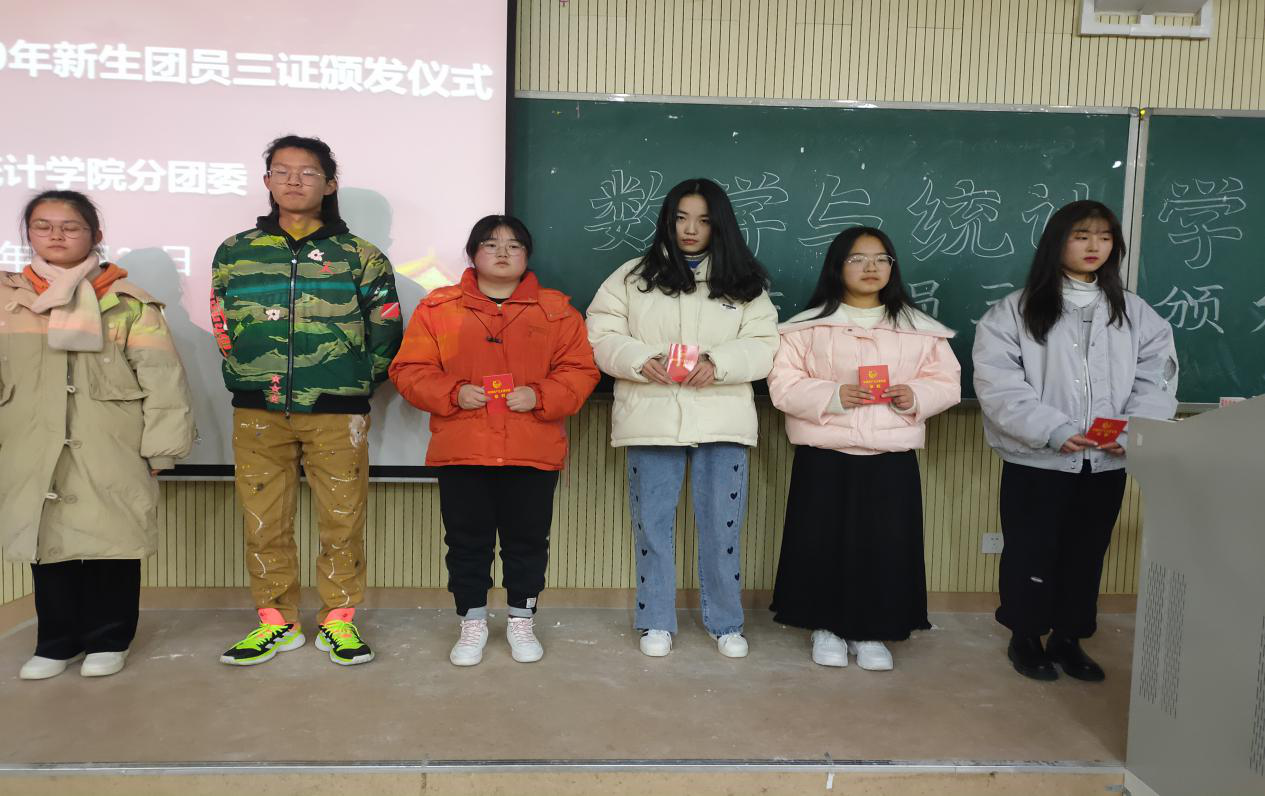 接着,各班团支书代表班级上台接受团徽和团章。