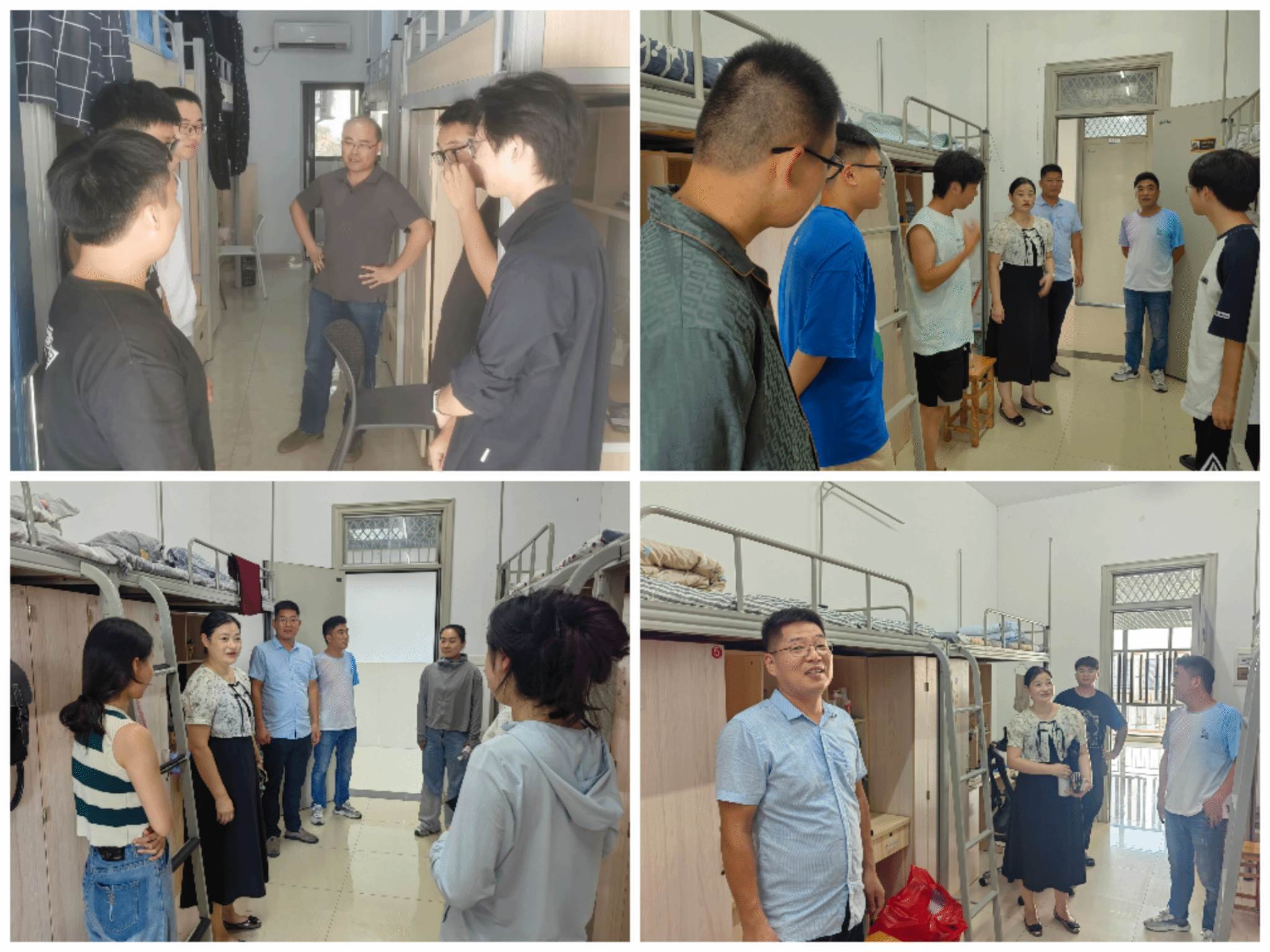 下午,公司领导与新生辅导员一起深入宿舍看望新生及家长,传达关爱。“家是哪里的?怎么过来的?”“中午在食堂吃得怎么样?”“空调效果好不好”“对宿舍满不满意”……轻松的话语迅速拉近了彼此的距离。同时,公司领导一行还仔细查看了宿舍各种设施是否完好,强调了安全用电、防火、防盗、防骗等注意事项,并叮嘱同学们尽快适应新的学习生活环境,完成角色转变,科学、合理地规划好大学期间的学业和生活,在新的征程上取得新成绩。
