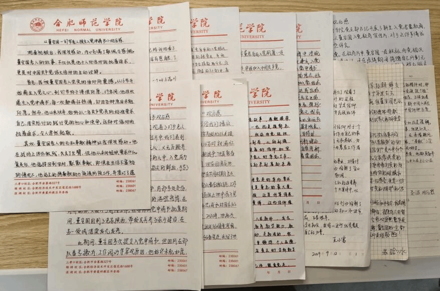 会后,同学们观看了第十六届全国党员教育优秀电视片《入党》。电视片讲述的是董安国坚定信念跟党走的故事,1950年10月,16岁的董安国手写血书申请加入了中国人民志愿军赴朝参战,直到他八十七岁高龄时,他终于实现了一生追求的崇高理想,光荣地成为一名中国共产党员。同学们被董安国同志的故事深深感动。活动结束后,同学们写下观后感表达了对董安国的崇高敬意。