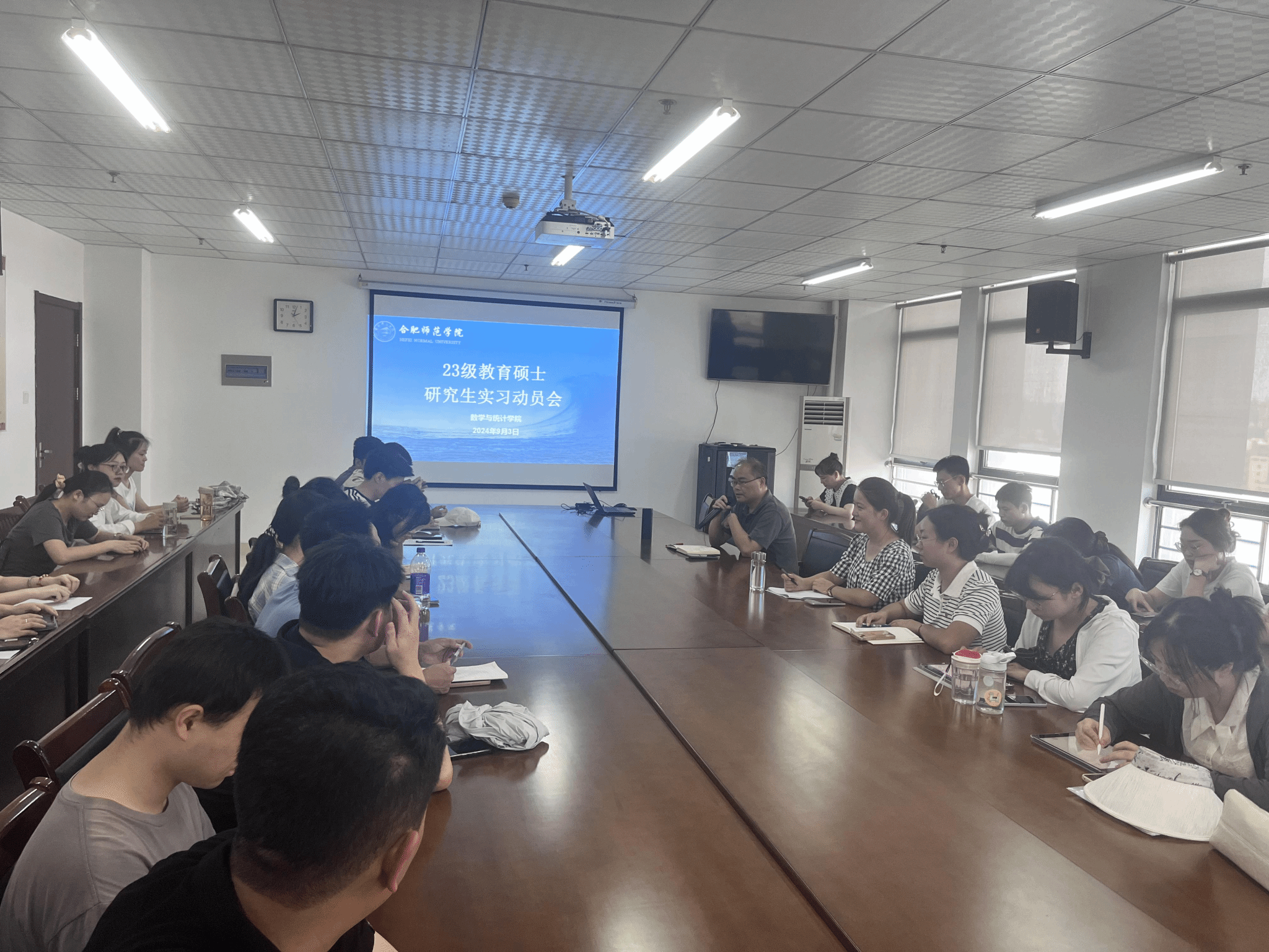 为做好2023级研究生教育实习工作,9月3日,WilliamHill中文官方网站在行知楼1102会议室召开教育硕士研究生实习动员会,会议由经理杨刘主持,教学秘书刘莲及2023级42名研究生参加会议。