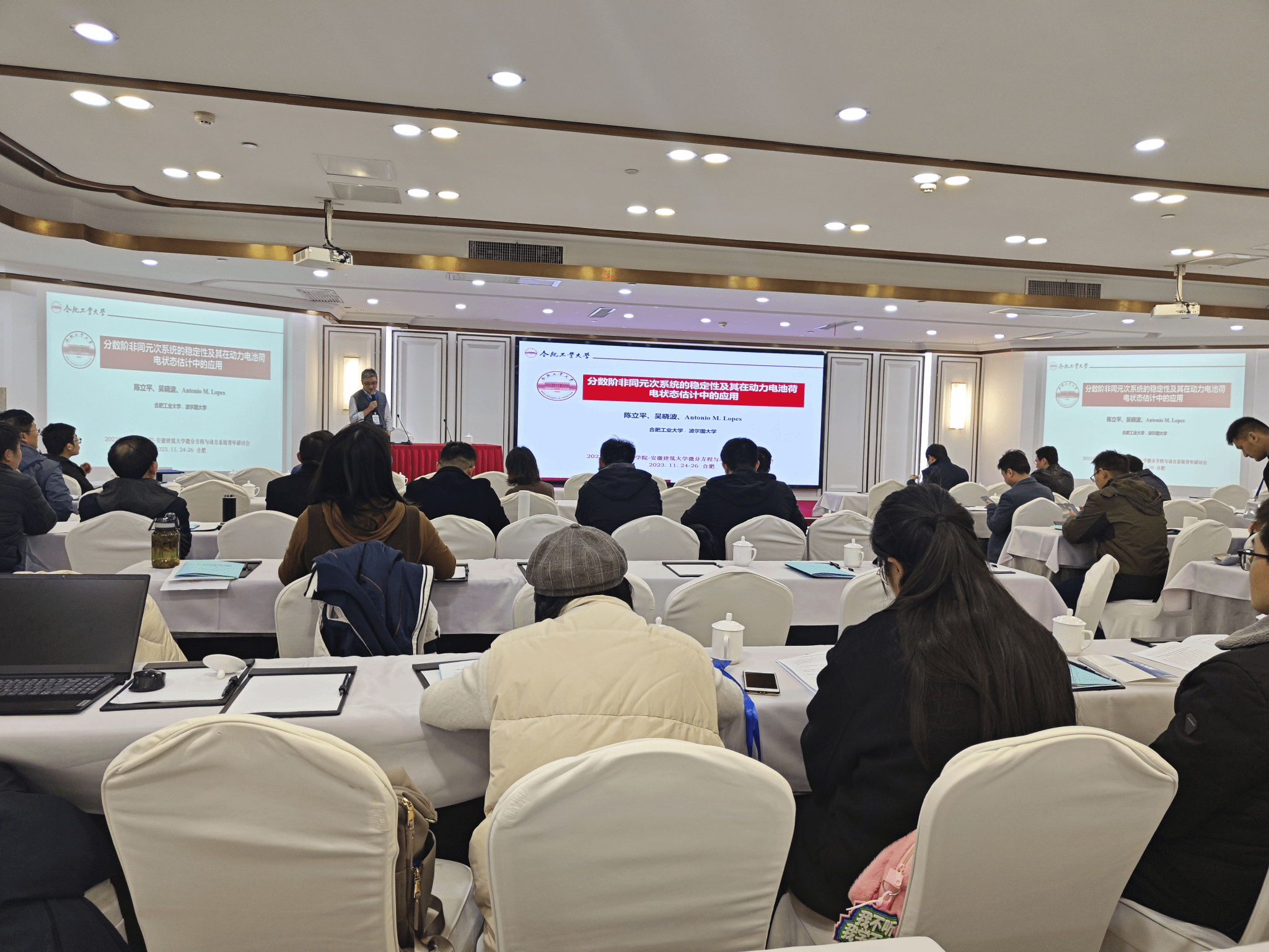 11月24日-11月26日,由WilliamHill中文官方网站、安徽建筑大学理公司举办的2023年williamhill官方网站—安徽建筑大学微分方程与动力系统青年研讨会在合肥召开。来自中国科学技术大学、湘潭大学、中国地质大学(北京)、北京信息科技大学、曲阜师范大学、上海师范大学、合肥工业大学、安徽大学、扬州大学、南京邮电大学与安徽师范大学等20多所高校近百名专家学者参加了此次会议。