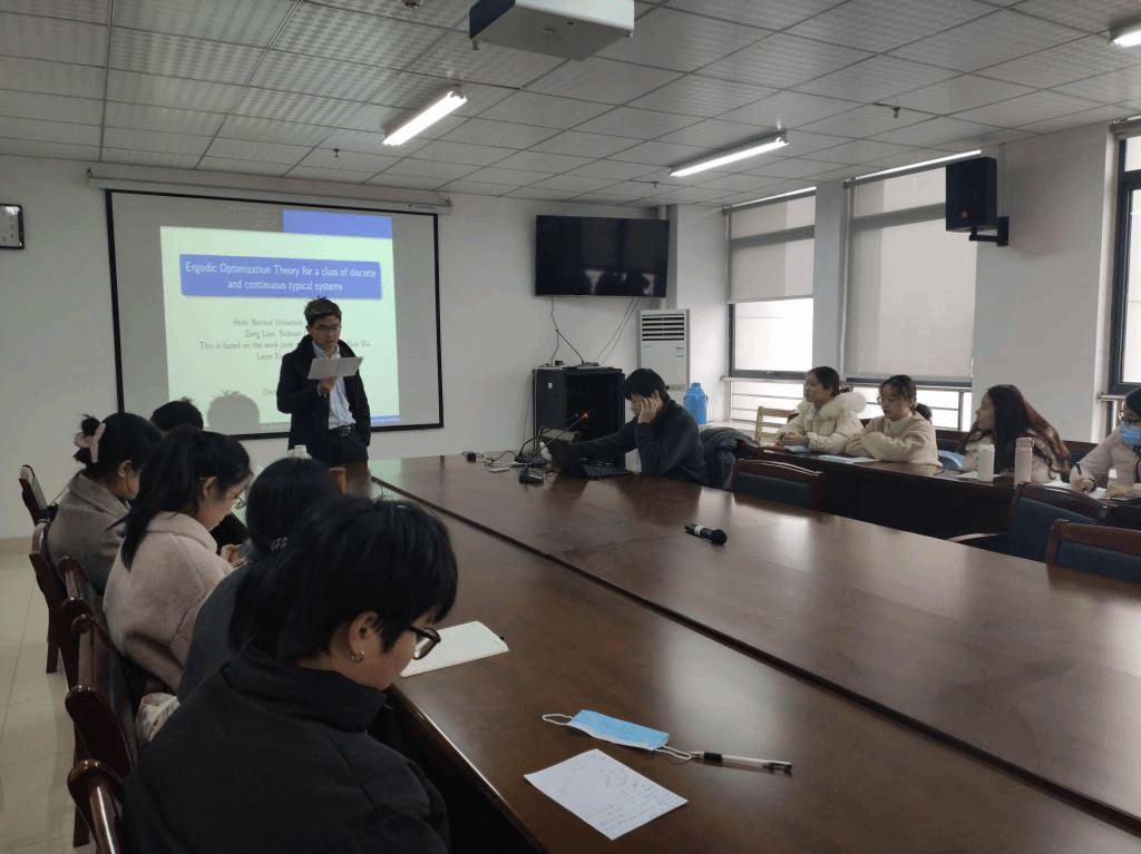 7日上午,黄文教授与连增教授分别作"非自治动力系统与遍历优化"专题学术报告,报告由WilliamHill中文官方网站周辉博士主持。WilliamHill中文官方网站部分教师、研究生和安徽大学部分博士生与硕士生聆听了报告。黄文教授作了题为《Lyapunov optimizing measures and periodic measures for C2 expanding maps》的学术讲座。黄文教授先从动力系统与遍历优化概念来源谈起,深入浅出讲解了马蹄、熵理论、弱马蹄等动力系统中的重要成果,介绍了与其合作者在该领域取得进展。随后,连增教授作题为《一类斜积双曲系统的动力学性质》的学术讲座。连增教授首先介绍了斜积动力系统与随机动力系统的产生背景和基本理论。通过对确定系统与随机系统的区别与联系进行深刻比较,引入随机周期轨以及随机马蹄等重要概念,同时介绍了其与合作者在随机马蹄刻画方面取得的重要成果。报告会后,两位专家对师生们提出的问题作了详细解答。两场学术报告既有很高的理论水平,也给出了对于具体问题的研究方法与技巧,使与会师生感到受益匪浅。
